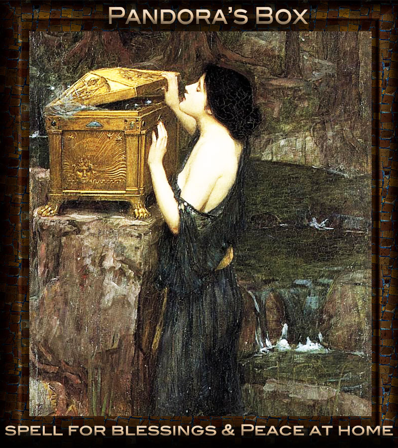 I believe that almost everyone knows the myth of Pandora’s Box. For those who don’t lets say few words. Out of curiosity, Pandora (whose actual name means She Who has all the Gifts), let’s say the mother of mankind – something like Eva in Greek Pantheon – opened the box where all kinds of evils dwelled but she managed to keep in the box the most supreme virtue, HOPE!This is what this spell is all about. When fights and evils crawl to your home and ruin your peace, sometimes hope is all you have. But hope is so POWERFUL! You can do whatever you want. This is what magic is for. Magic helps us express our dreams and desires to the universe! This symbolises what Pandora – and therefore all mankind – has inside. The Power to change this world, even if all we see is darkness. Hope and desire to change is what it takes.