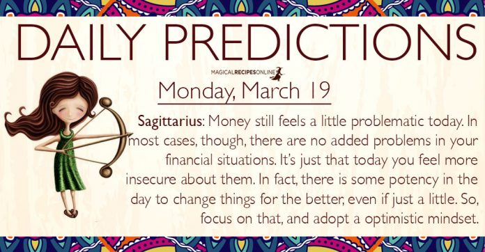 General Daily Predictions: Today, the Moon from Aries squares Pluto in Capricorn. It also conjuncts Uranus in Aries. Afterwards, from 19:29 UT until 01:07 UT of the 20th, it will be void of course.