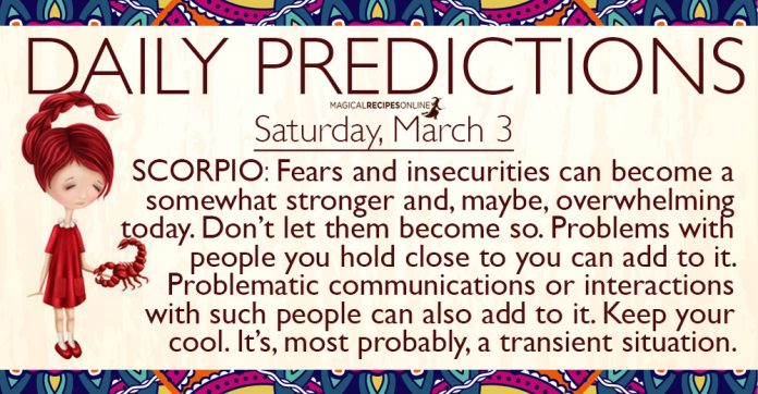 Fears and insecurities can become a somewhat stronger and, maybe, overwhelming today. Don’t let them become so. Problems with people you hold close to you can add to it. Problematic communications or interactions with such people can also add to it. Keep your cool. It’s, most probably, a transient situation.