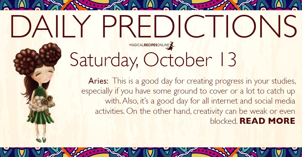 This is not the best day for those who work through internet, for web designers, and for similar professions. It’s also not the best day to arrange an advertising campaign. On the other hand, self-promotion both for yourself and your services or products is very advisable. Also, this is a good day to work on your goals and dreams, especially if you have them in common with your special someone.