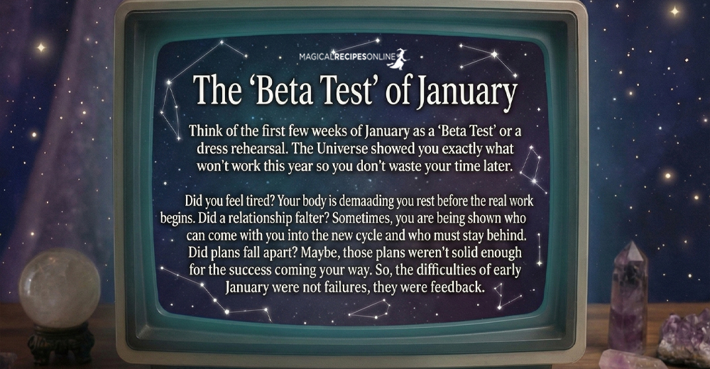 Think of the first few weeks of January as a “Beta Test” or a dress rehearsal. The Universe showed you exactly what won’t work this year so you don’t waste your time later.