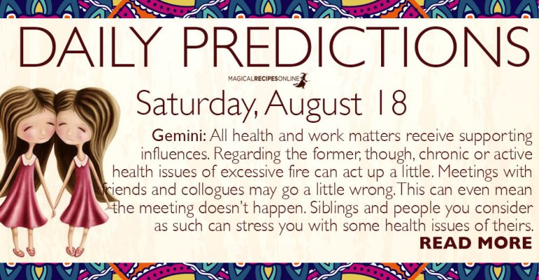 Daily Predictions for Saturday, 18 August 2018